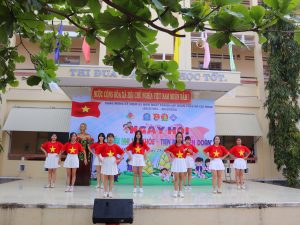 Theo đó, chương trình Ngày hội “Thiếu nhi vui khỏe – Tiến bước lên Đoàn” nội dung gồm: Nghi lễ chào cờ theo Nghi thức Đội, các tiết mục văn nghệ; đồng diễn Dân vũ; tổ chức kết nạp Đoàn viên mới; phát động Hội trại và tổ chức các trò chơi dân gian; Chương trình Diễn đàn tư vấn tâm lý “Vượt qua chính mình”. Nhằm trang bị những kỹ năng xử lý tình huống liên quan đến tâm lý mà các em có thể gặp phải trong gia đình, nhà trường và xã hội; Chương trình nghệ thuật “Tiến lên Đoàn viên”, với các tiết mục văn nghệ biểu diễn đặc sắc như: các ca khúc ca ngợi về Đảng, Bác Hồ kính yêu, bài hát truyền thống Đoàn TNCS Hồ Chí Minh, ca khúc quê hương đất nước…Qua chuỗi các hoạt động đã thu hút được hơn 1.000 học sinh tham gia.