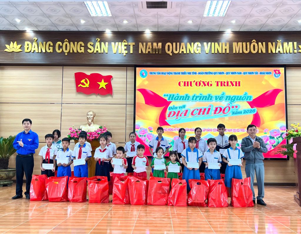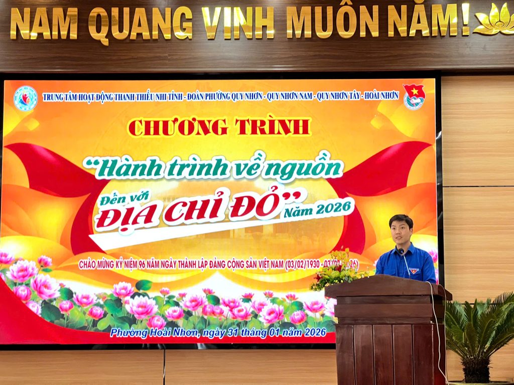 Sáng ngày 31/01/2026, Trung tâm Hoạt động Thanh thiếu nhi tỉnh Gia Lai phối hợp với Ban Thường vụ đoàn phường Quy Nhơn, Quy Nhơn Nam, Quy Nhơn Tây, Hoài Nhơn tổ chức chương trình “Hành trình về nguồn – đến với địa chỉ đỏ” năm 2026 tại phường Hoài Nhơn.