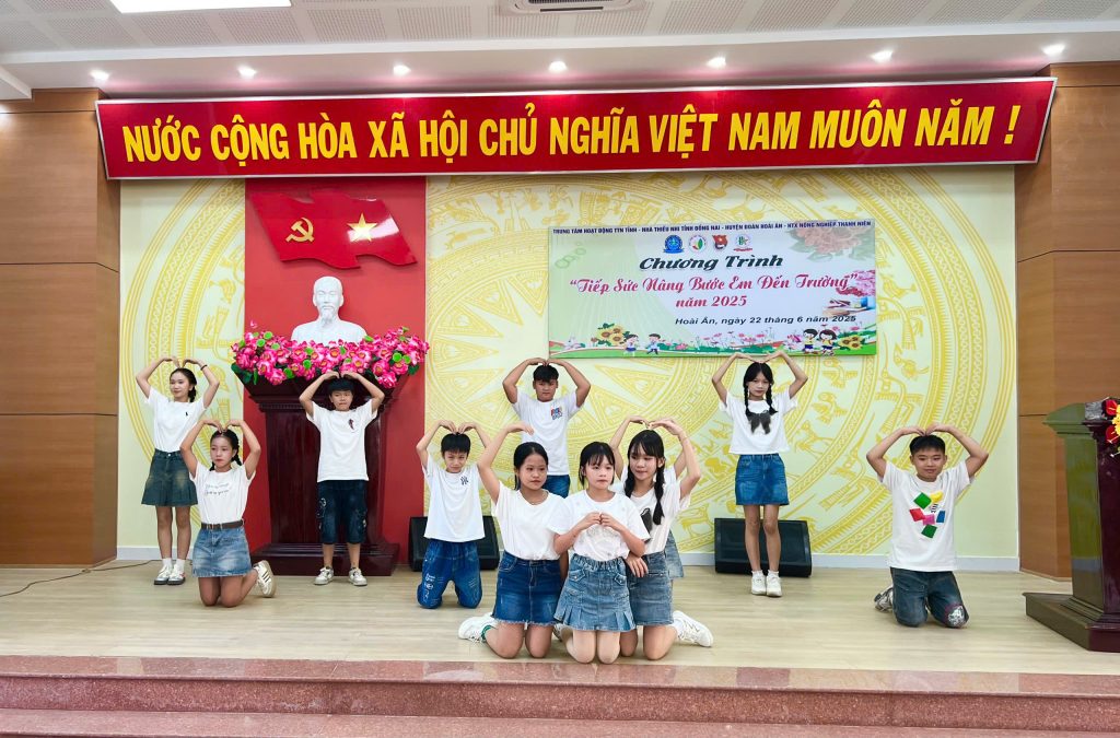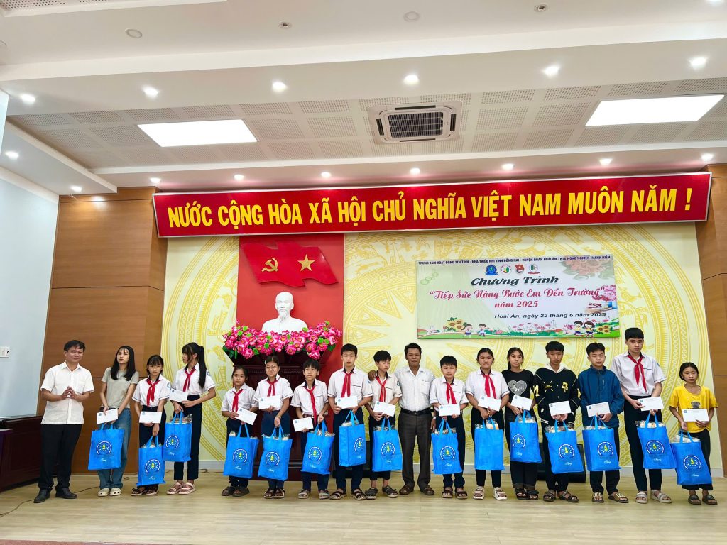 Sáng ngày 22/6/2025, Trung tâm Hoạt động Thanh thiếu nhi tỉnh phối hợp với Ban Thường vụ Huyện đoàn Hoài Ân tổ chức chương trình “Tiếp sức nâng bước em đến trường” năm 2025 tại xã Ân Đức, huyện Hoài Ân; chương trình nhận được sự đồng hành của Nhà Thiếu nhi tỉnh Đồng Nai và Hợp tác xã Thanh Niên huyện Hoài Ân. Tại chương trình, Ban Tổ chức trao tặng 50 suất quà cho các em thiếu nhi có hoàn cảnh khó khăn vượt khó học tốt với tổng trị giá 30 triệu đồng.