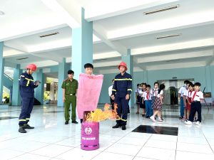 Bên cạnh đó Trung tâm phối hợp với Ban Thường vụ Đoàn thanh niên phòng Cảnh sát PCCC & CNCH Công an tỉnh Bình Định tập huấn kỹ năng về công tác phòng cháy chữa cháy, sơ cấp cứu và kỹ năng phòng chống đuối nước cho Giáo viên Tổng phụ trách Đội và các em học sinh tham gia chương trình. Thông qua chương trình tập huấn nhằm tuyên truyền, nâng cao nhận thức về vai trò, trách nhiệm của thiếu nhi trong công tác phòng cháy chữa cháy, cung cấp các kỹ năng cần thiết để xử lý tình huống khi gặp sự cố cháy nổ xảy ra, xử lý tình huống khi có đuối nước qua đó nhằm giảm thiểu tới mức thấp nhất thiệt hại về tính mạng và tài sản.
