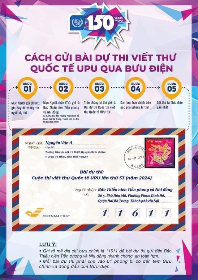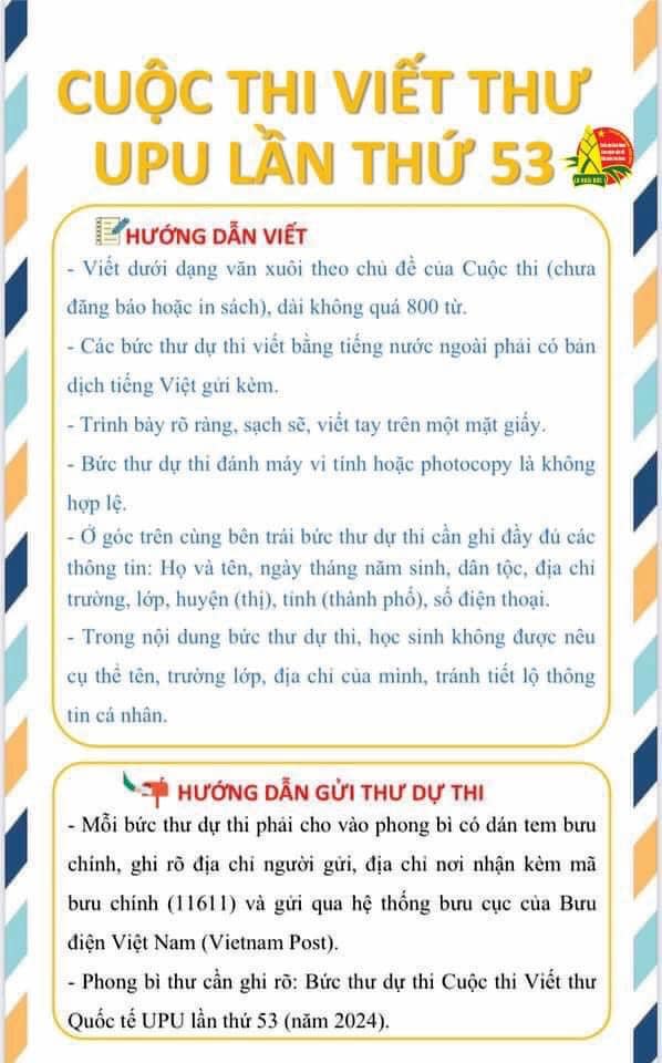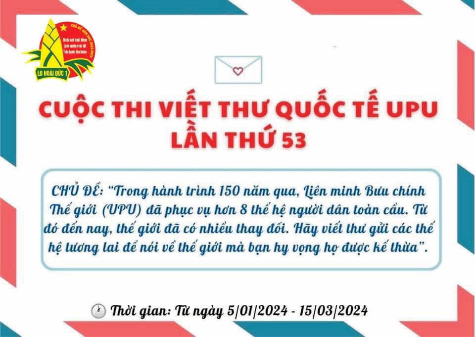 Năm 2024, Bộ Giáo dục và Đào tạo tiếp tục phối hợp với Bộ Thông tin và Truyền thông, Trung ương Đoàn Thanh niên Cộng sản Hồ Chí Minh, Tổng Công ty Bưu điện Việt Nam… tổ chức Cuộc thi Viết thư Quốc tế của Liên minh Bưu chính Thế giới (UPU) lần thứ 53.